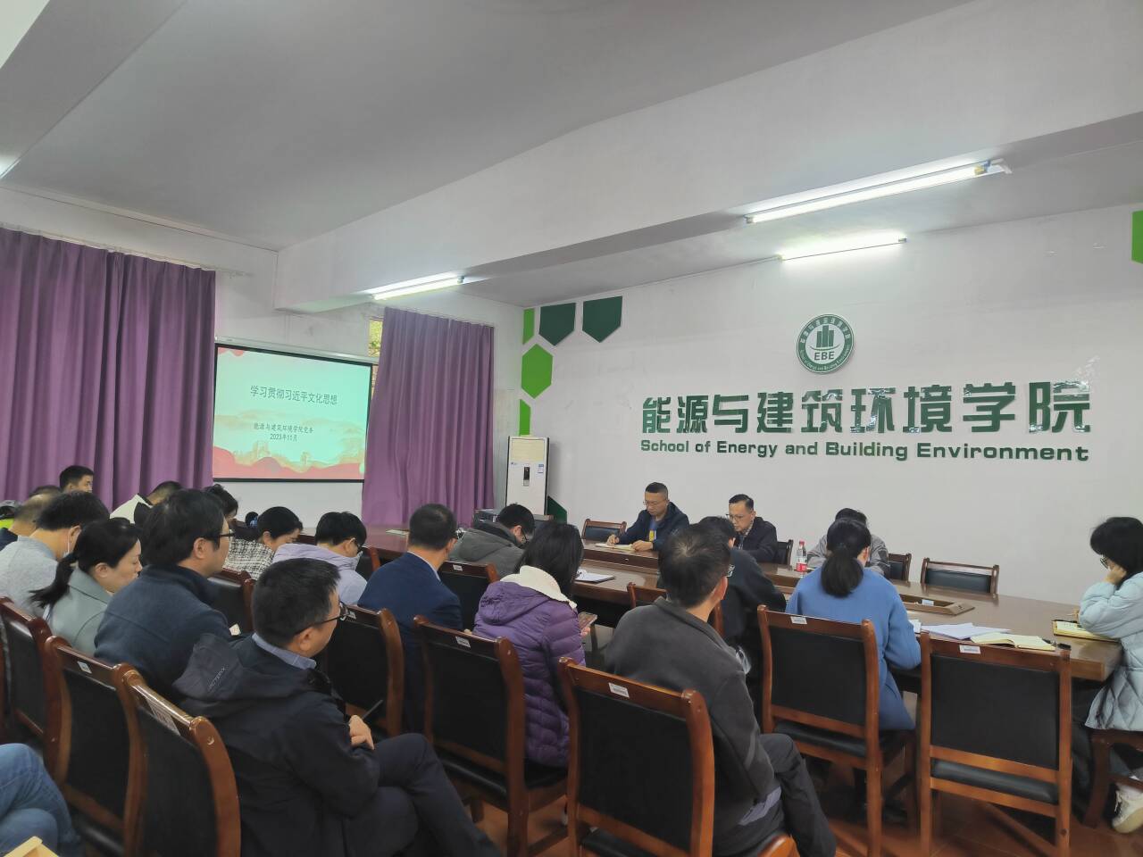 11月30日,学院党委组织全院教职工在会议室集中学习习近平文化思想。学院党委书记苏庆勇主持。