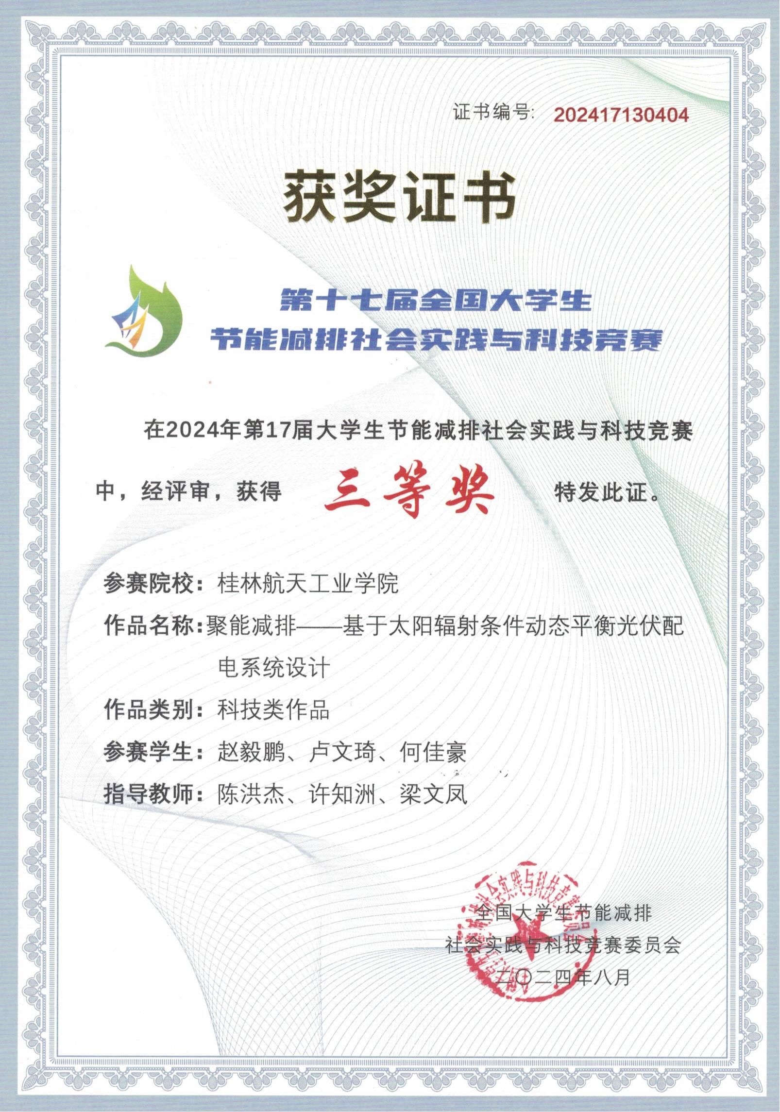 第十七届全国大学生节能减排社会实践与科技竞赛总决赛于8月4日至7日在中国石油大学(华东)举行。本届大赛共有595所高校(不含港澳台及国际赛道)报名参加。我校共有三支队伍参加此次竞赛,经过赛事委员会评审表决并通过,由伟德国际1949始于英国陈洪杰博士指导学生完成的《“窑控大师”打造低碳排高节能--推动绿色制造发展》和《聚能减排--基于太阳能辐射条件动态平衡光伏配电系统设计》作品均获得三等奖。
