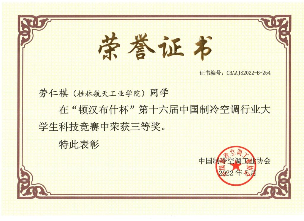 “顿汉布什杯”第十六届中国制冷空调行业大学生科技竞赛已圆满落幕,由我院学生孙宏亮、劳仁棋、吴有康组成的“火星小队”和林宇浩、李春英、陈俊杰组成的“浮盈加仓队”代表学校参加华南赛区总决赛,经过评比,最终“火星小队”获得三等奖。
