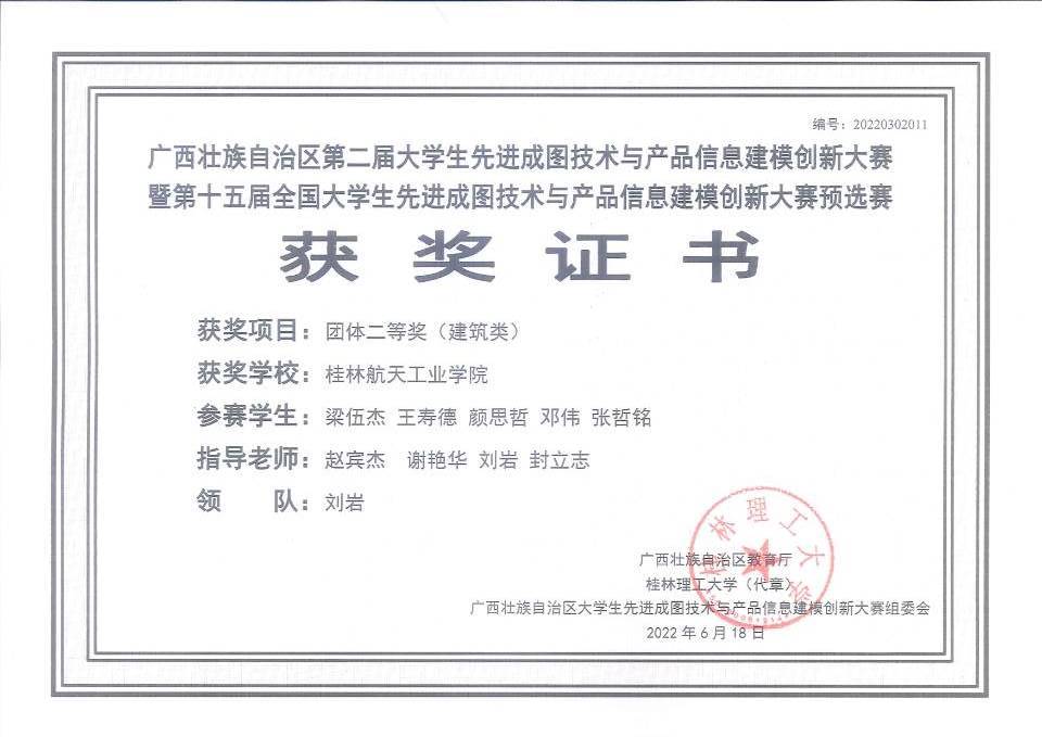近日,第十五届全国大学生先进成图技术与产品信息建模创新大赛广西赛区选拔赛获奖结果公布,我校伟德国际1949始于英国组建的3支队伍取得了建筑类项目个人全能赛一等奖10人、二等奖2人、三等奖5人,团体赛一等奖一项、二等奖两项的骄人战绩,最终选出16名学生作为广西代表队之一,征战被誉为“图学界奥林匹克”的“高教杯”全国大学生先进成图技术与产品信息建模创新大赛的国家赛场。