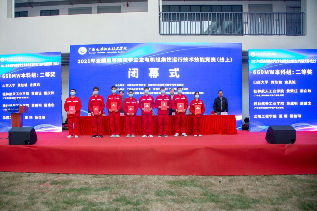 12月4日至5日,由中国电力教育协会和全国电力职业教育教学指导委员会主办,2021年“全国高等院校学生发电机组集控运行技术技能竞赛”全国总决赛在线上举行,来自全国各大高等院校竞赛团队展开紧张激烈的角逐。在高等院校本科组36个团队中,我校伟德国际1949始于英国与广西电力职业技术学院联合培养的产教融合班三个参赛队伍不负众望,取得优异成绩。在广西电力技术学院黄儒斌、赵芳芳老师指导下,由学生韦广聪和农小龙组成的队伍脱颖而出在660MW本科组荣获全国一等奖,由学生秦庆炜、黄荣任、黄威明、唐建忠组成的两支竞赛队伍在660MW本科组荣获全国二等奖。