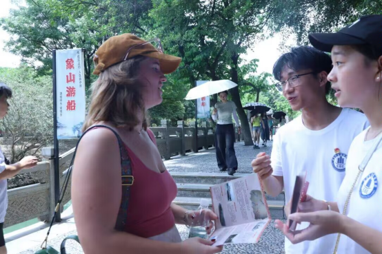 (图为实践团队员在向游客宣讲 李绮宇 供图)
