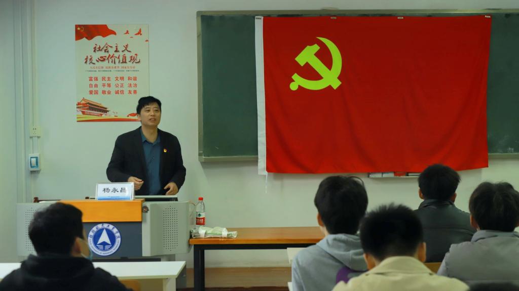 2023年12月14日中午12:30,校党委常委、校长助理、党校办主任、党委宣传部部长杨永昌在北校明志楼216教室以“习近平新时代中国特色社会主义思想”为主题,为伟德国际1949始于英国学生第一党支部全体党员讲授专题党课。专题党课由党支部书记朱江江主持,学院党委副书记韦喆应邀参加。